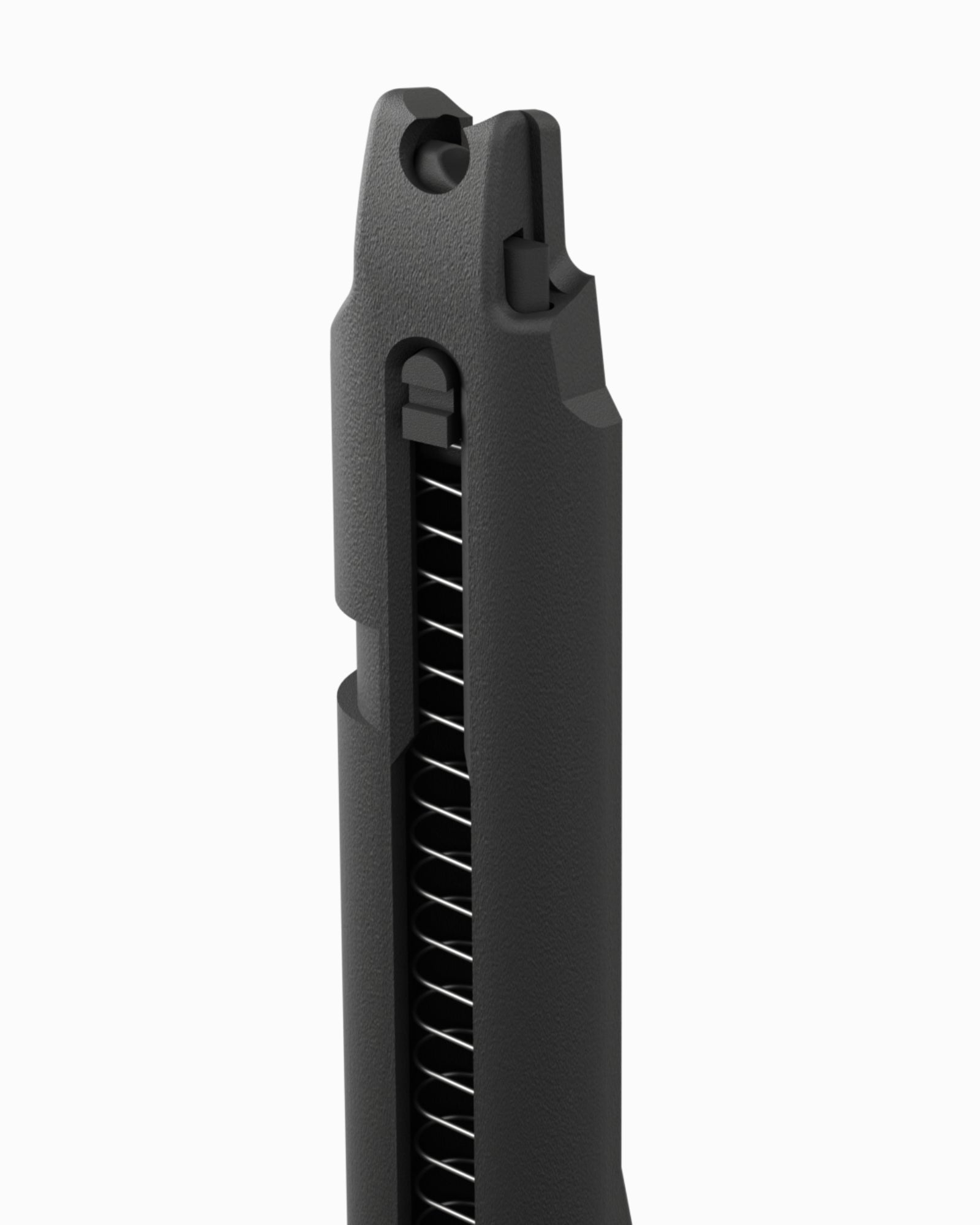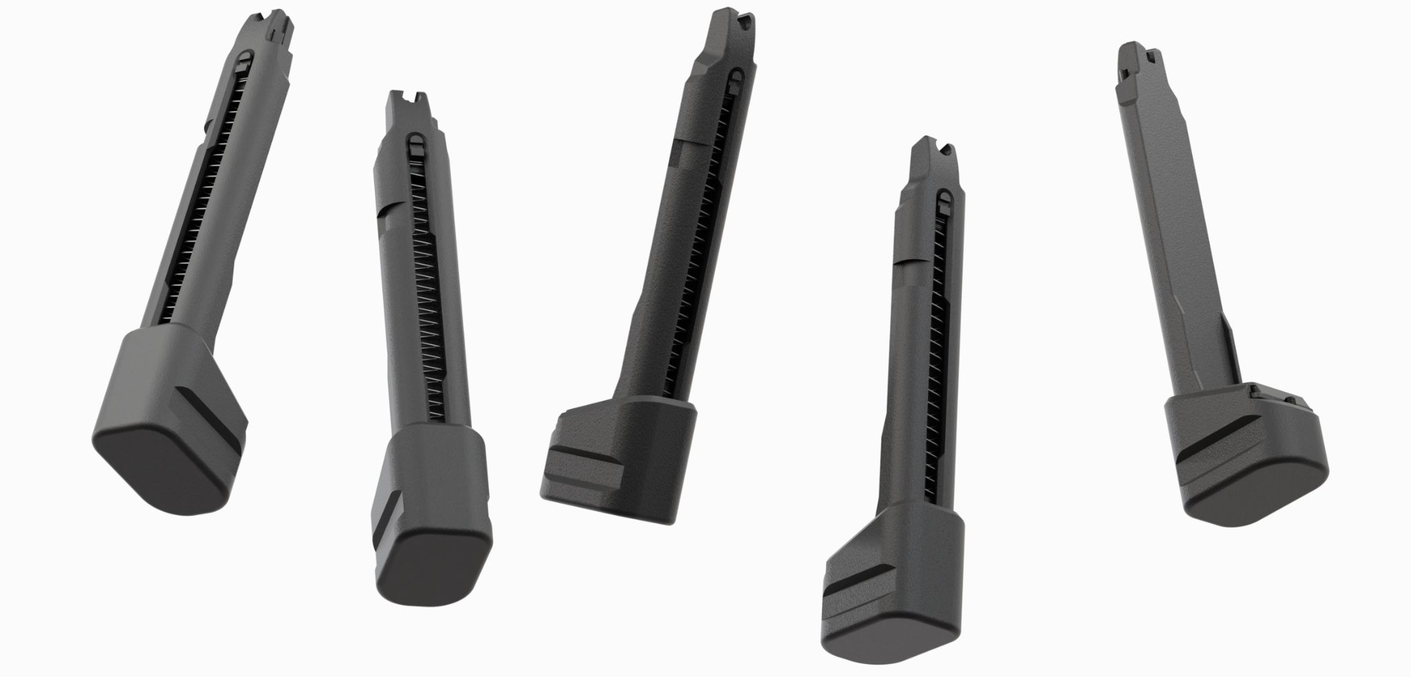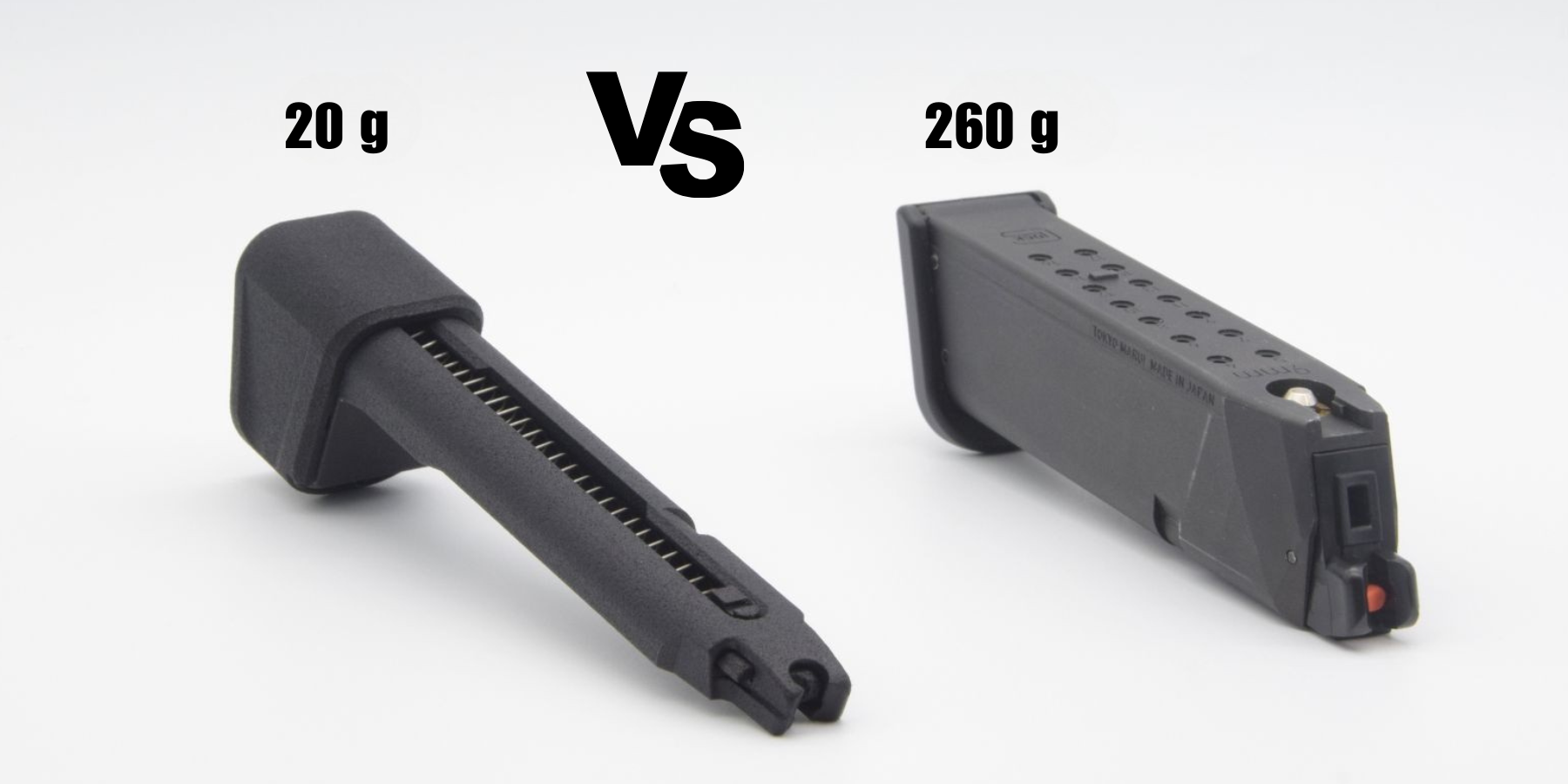 Thanks to their minimalist design, stripped of any unnecessary parts, the magazines reach a record weight of just 20 g while maintaining remarkable strength.