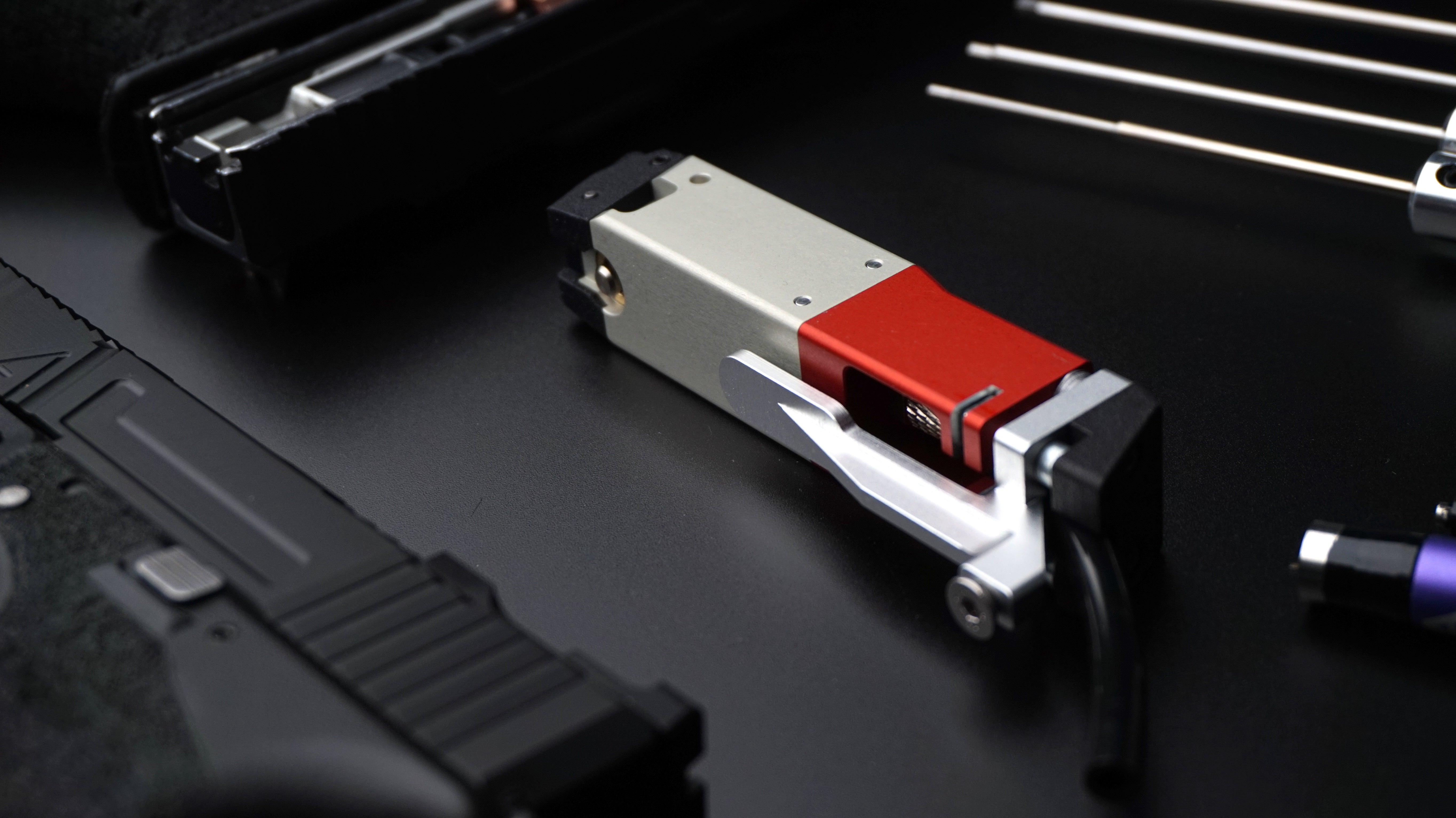 - For AAP-01 and Glock replicas (excluding TM G17 Gen4 and Gen5), a small modification is required to route the HPA hose through the lower frame. This modification is simple and poses no risk to the replica. An optional cutting template is available to make the operation easier.